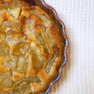 - Étaler la crème frangipane sur le fond de tarte précuit.