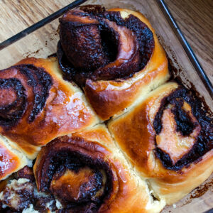 • Etaler l’appareil à la cannelle puis rouler la brioche sur elle même. Couper des rondins de 3 cm environs.